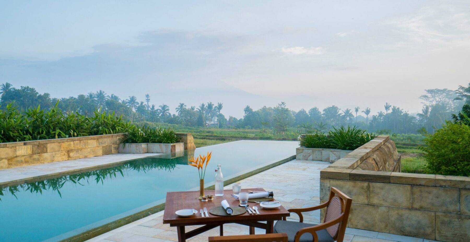 Each Garden Suite offers a private walled garden with picturesque views of the Menoreh Hills and tiered rice paddies.