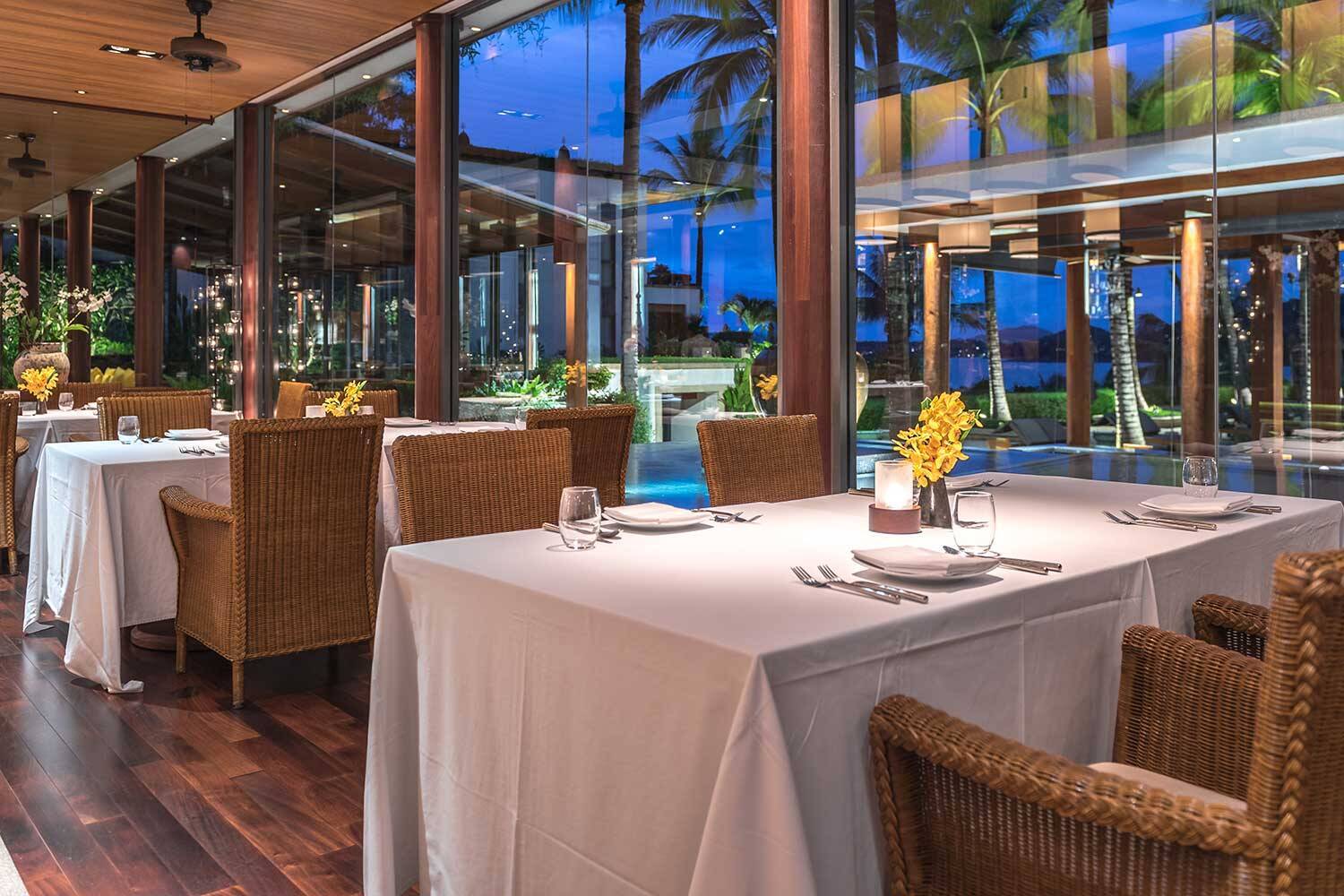 You won’t want for space at this island retreat: room options are limited to suites and villas, of which all feel deliciously spacious. As far as suites go, you’ll have the option of Terrace, Pool Suites and Penthouse Suites. The latter two have private pools, but if you opt for a Terrace Suite you’ll at least have the resort’s 40m pool nearby. Regardless of room, all spaces are streamlined and sophisticated, with gorgeous natural wood, elegant furniture, inviting lighting and attractive contemporary artwork. Full-wall windows open up to private outdoor spaces with stellar tropical views. The vistas from the sleek infinity pools of penthouse suites, naturally, are the best. Sprawling villas are in a league of their own and feel wonderfully secluded with their private pools, tropical gardens and dining salas.