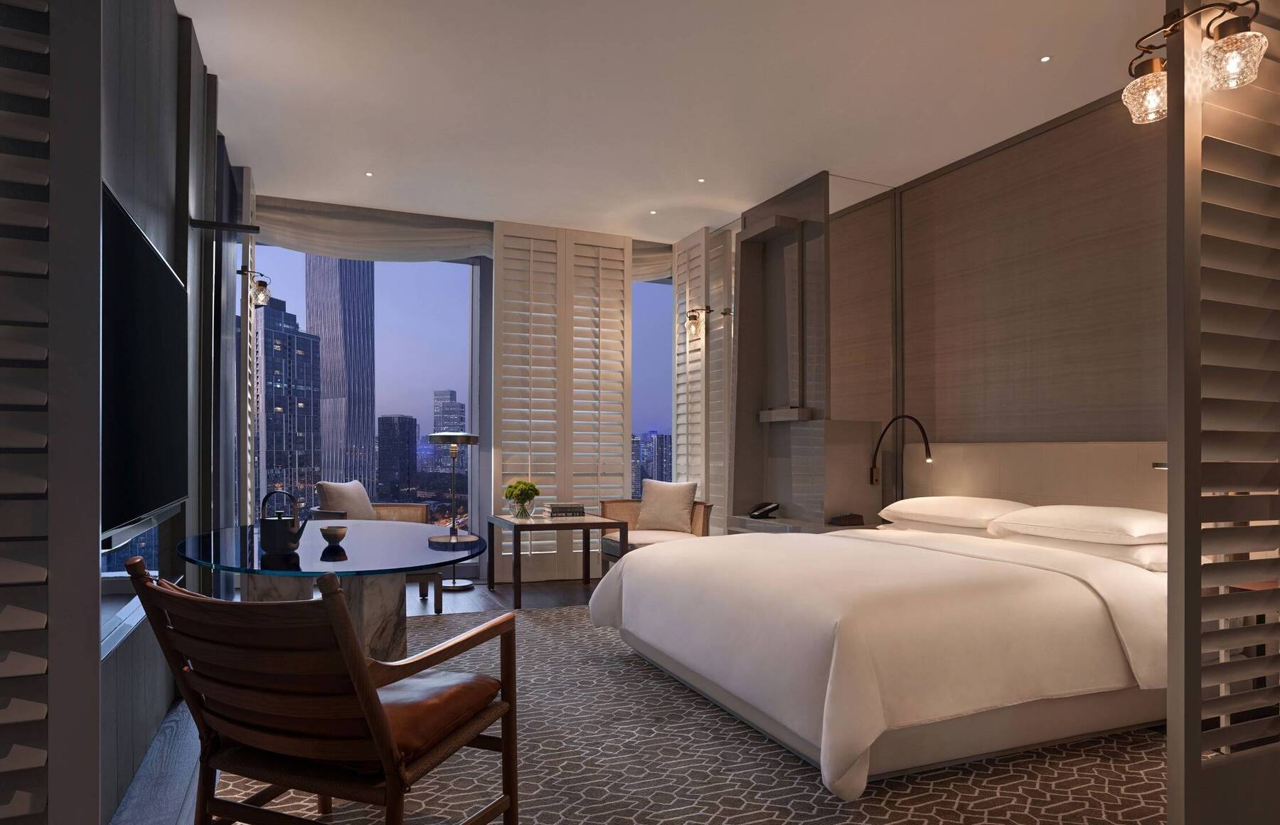 Feel the buzz of the city as you take in stunning views of Shenzhen from the floor-to-ceiling windows of this generous, locally inspired room. The private retreat features an array of luxurious amenities, including a plush king bed and an oversized marble bathroom with deep-soaking tub and rain shower.