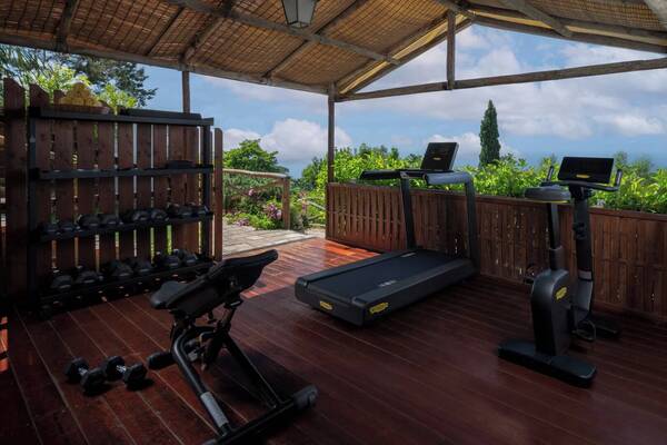 The bathroom features a Jacuzzi tub thoughtfully positioned to take in the sea views, while the private terrace provides yet another vantage point over the island’s striking coastline.