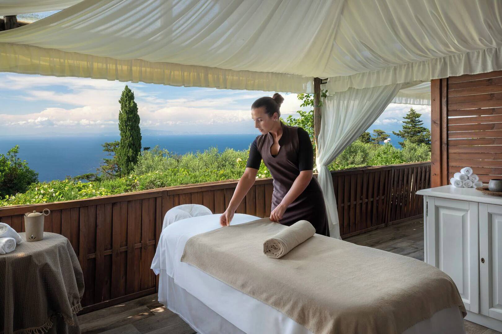Guests can savor tantalizing glimpses of the Bay of Naples and the nearby islands of Ischia and Procida from the privacy of their outdoor space.