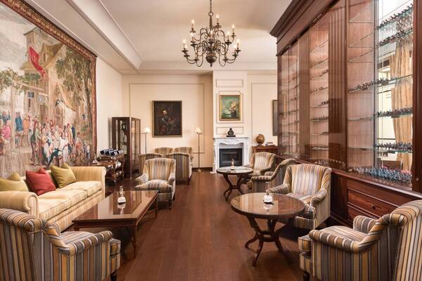 Additionally, the two spacious bathrooms are reflective of the room´s worldly style. Each is equipped with a creamy marble double sink, separate shower, and bathtub. Extra amenities, such as heated floors, exclusive Luxury Collection bath amenities, plush bathrobes, and slippers, guarantee guests are pampered. A hairdryer and additional phone are also provided.Lowest rate