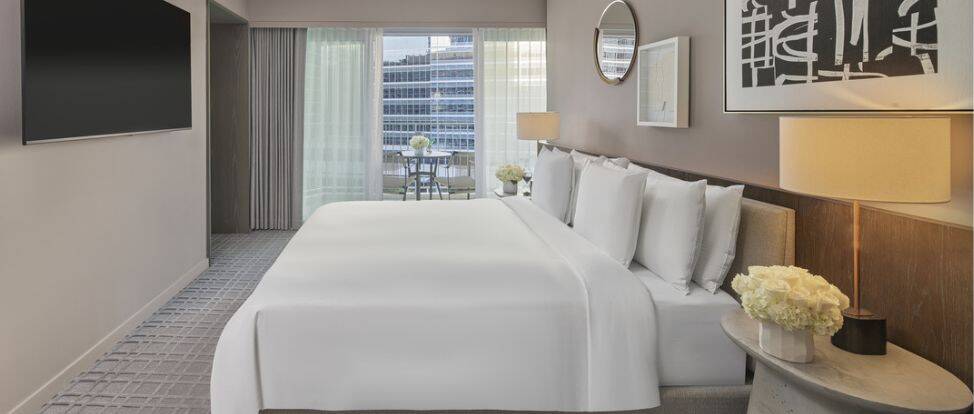 Exclusive access to Fairmont Gold Lounge with dedicated team, breakfast and canapes. LA city views span out from this high-floor suite with floor-to-ceiling windows, 2 furnished balconies, writing desk, and a walk-in shower. Connectors available.