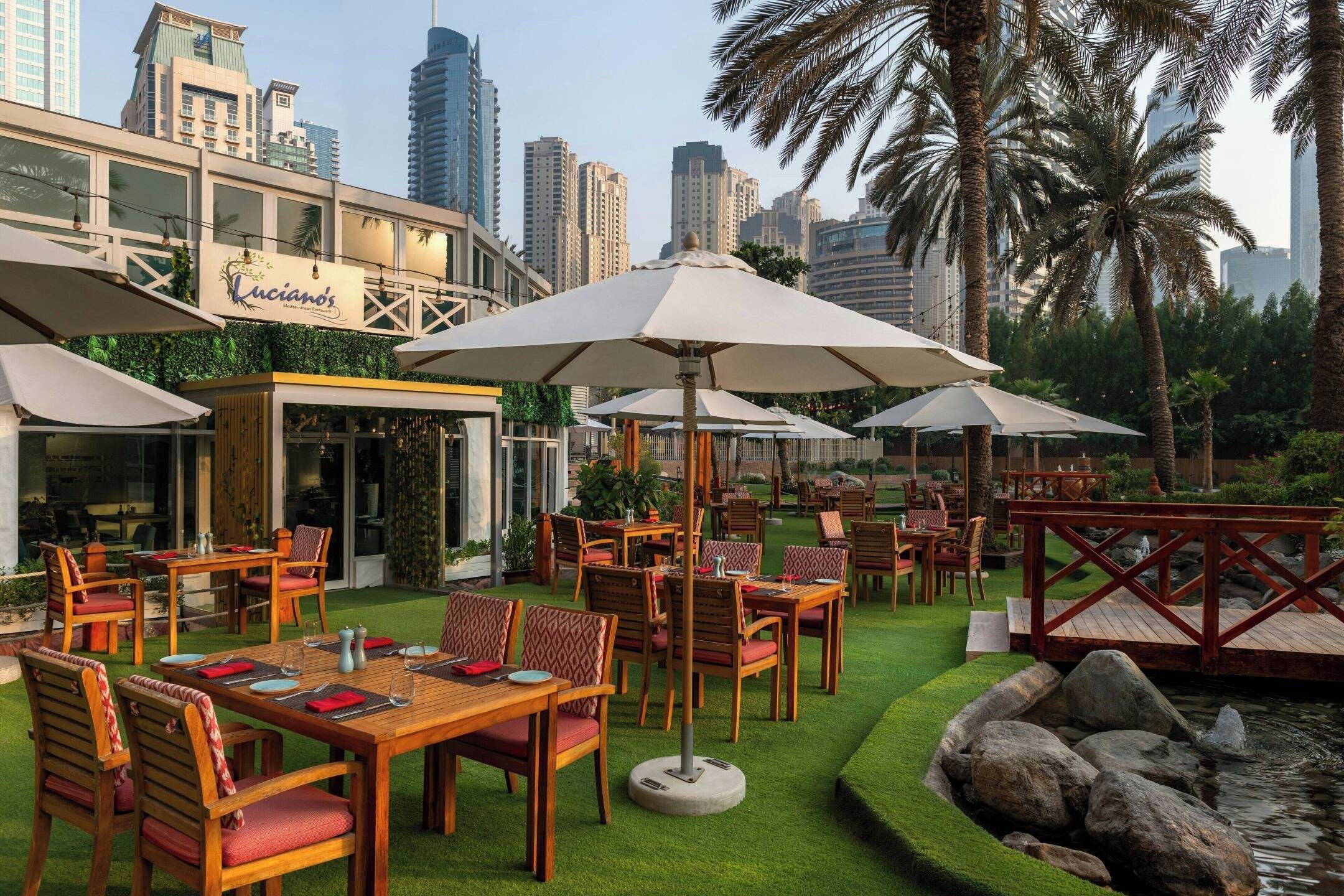 With 14 on-site dining options, there's something to suit every mood. Al Manara Beach Bar offers casual dining just steps from the water, while Olival Eatery & Bar treats guests to fresh seafood and an oyster bar in a tranquil tree-lined setting. Begin your morning with a lavish breakfast at Al Dhiyafa Grand Kitchen, and end your day with traditional steakhouse fare and fine wine at The Grand Grill Restaurant and Lounge. The Underground Pub brings a taste of England to the UAE with fish and chips, international beer, live music and trivia nights, while Acacia Lounge Coffee House is the perfect place to pick up a pastry and a hot cup of coffee.