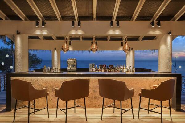 Enjoy relaxed all-day dining at Aailaa, a waterfront restaurant with a wine room stocked with over 1,620 bottles and a breakfast buffet featuring live cooking stations. Enjoy Thai cuisine (and rum cocktails) among the treetops at Kaashi, traditional Japanese specialities and sake at Hashi or wood-fired pizza and other Italian dishes at Fiamma. Shio offers fine dining in an elegant overwater dining room with an open kitchen. For drinks, sink into a swinging bar chair at Horizon to watch the sunset while sipping tropical cocktails. Alternatively, enjoy Japanese whiskeys at Wabi Sabi, or choose from almost 100 different rums at Rum Baan.