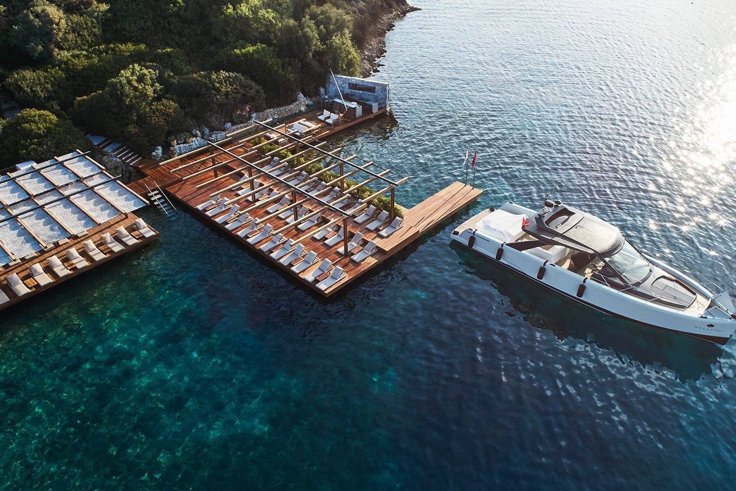 There is no beach, but there are steps into the water. After a dip, return to your waterfront sunbed and raise your hand; a waiter will appear from the bar area. Aside from the pool, the fitness centre, windsurfing and jet-propelled stilt adventures await. Plan to visit Macakizi Spa to unwind in the hammam or to enjoy a Balinese massage. Best of all, the resort has its own yacht, which guests can hire, so at sea as on land, the Macakizi dream continues.
