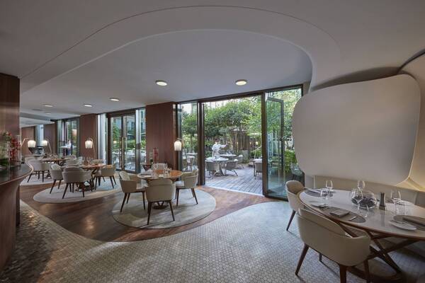 The two-Michelin starred Sur Mesure par Thierry Marx is avant-garde both in gastronomy and appearance; the dining room is an intriguing, artsy construction that looks like it might be the inside of a cloud. Camélia has a more relaxed atmosphere and traditional French cuisine, while the health-conscious can dine on avocado toast and other healthful options at L’Honoré. Right outside, fragrant camellia trees perfume a dreamy courtyard, which – partially covered and heated during the winter – can be enjoyed year-round. The hotel also has an enchanting patisserie in addition to the impossibly stylish Bar 8, where lights are kept low and the walls glimmer with inlaid crystals.