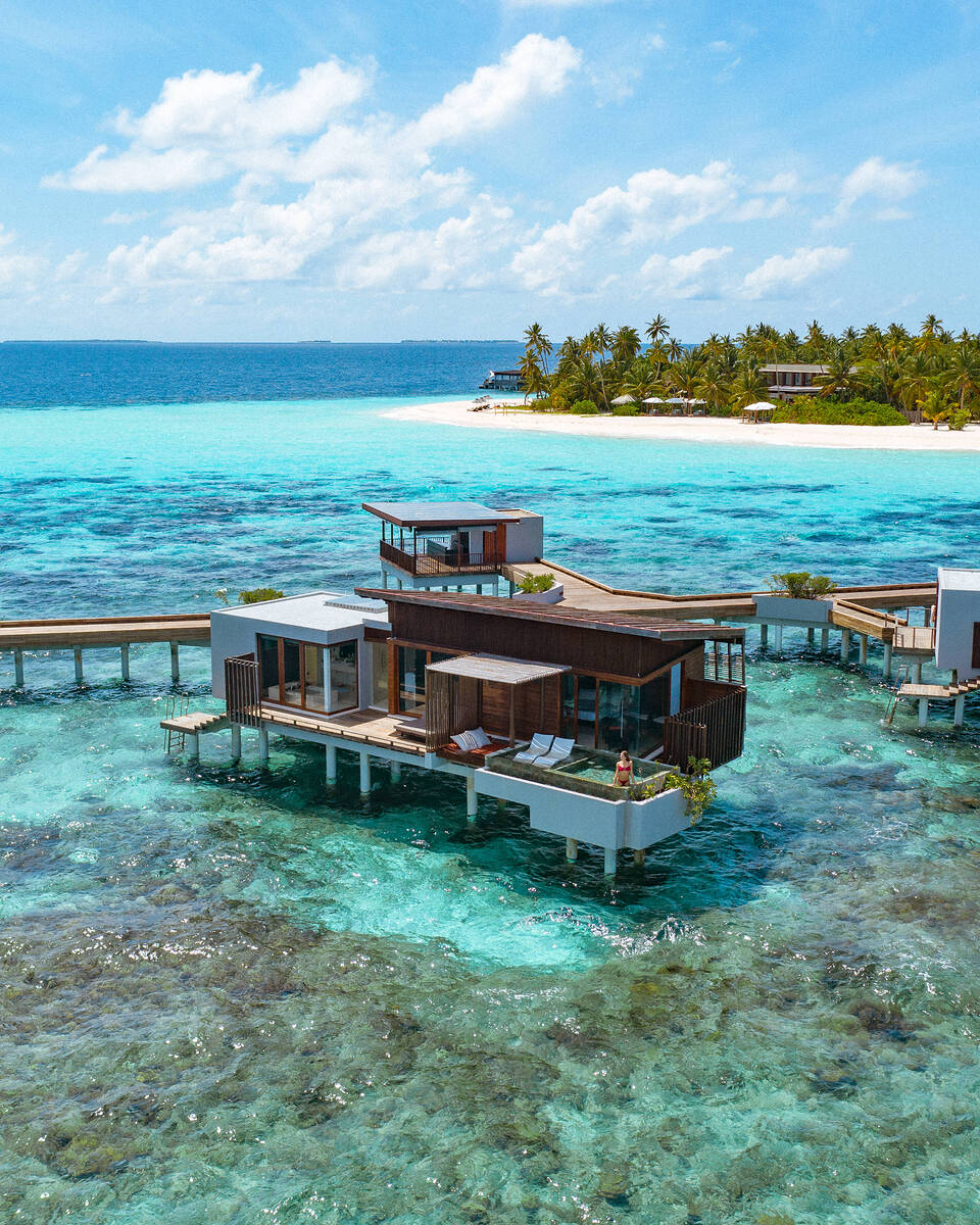 Villa options range from garden-surrounded to those that are perched above the waves; twenty of the fifty have private pools, and many have a variety of enticing features such as cabanas or direct access to the island’s gorgeous reefs. For an unforgettable stay, reserve the Three-Bedroom Residence, an 895 sqm retreat with its own infinity pool, a private gym and spa room and a terrace with a hot tub and barbecue grill. Rooms have coffee makers and environmentally-conscious touches such as refillable toiletry containers. It’s worth noting that the hotel has been decorated in an eco-friendly fashion, an effort that is apparent just about everywhere – from paper straws in the restaurants to organic products within the spa.
