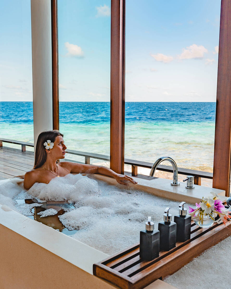 Or choose to do none of the above and instead while your time away in the lap of luxury without leaving the comfort of your room. Take a Maldivian cooking class, be spoiled in the garden-surrounded Vidhun spa, take a sunrise yoga class or just stay still and relax as you sunbathe by one of the two pools. There is no wrong way to spend your days in paradise.