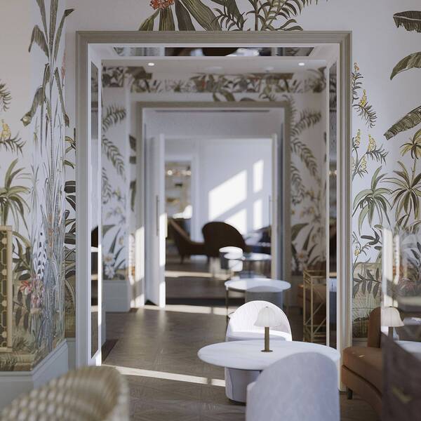 More fabulous vistas can be enjoyed from Rosewood’s restaurants and bars, which come in a trio of options. Authentic Austrian dishes are showcased at Neue Hoheit Brasserie: a charming, light-filled space with a wine gallery, balcony and views over Vienna’s skyline. Nearby is the seventh-floor rooftop spot Neue Hoheit Bar: an evocative, speakeasy-inspired space with plush seating indoors and a terrace with fabulous views outside. For an entirely different (yet equally fabulous) vibe, visit Salon Aurelie. This glamorous space is resplendent with botanical murals courtesy of local artist Marie Hartig; over 400 hours worth of painting adorns the enchanting space. Enjoy a treat, either sweet or savoury, while you’re there – the Gugelhupfs are particularly good.