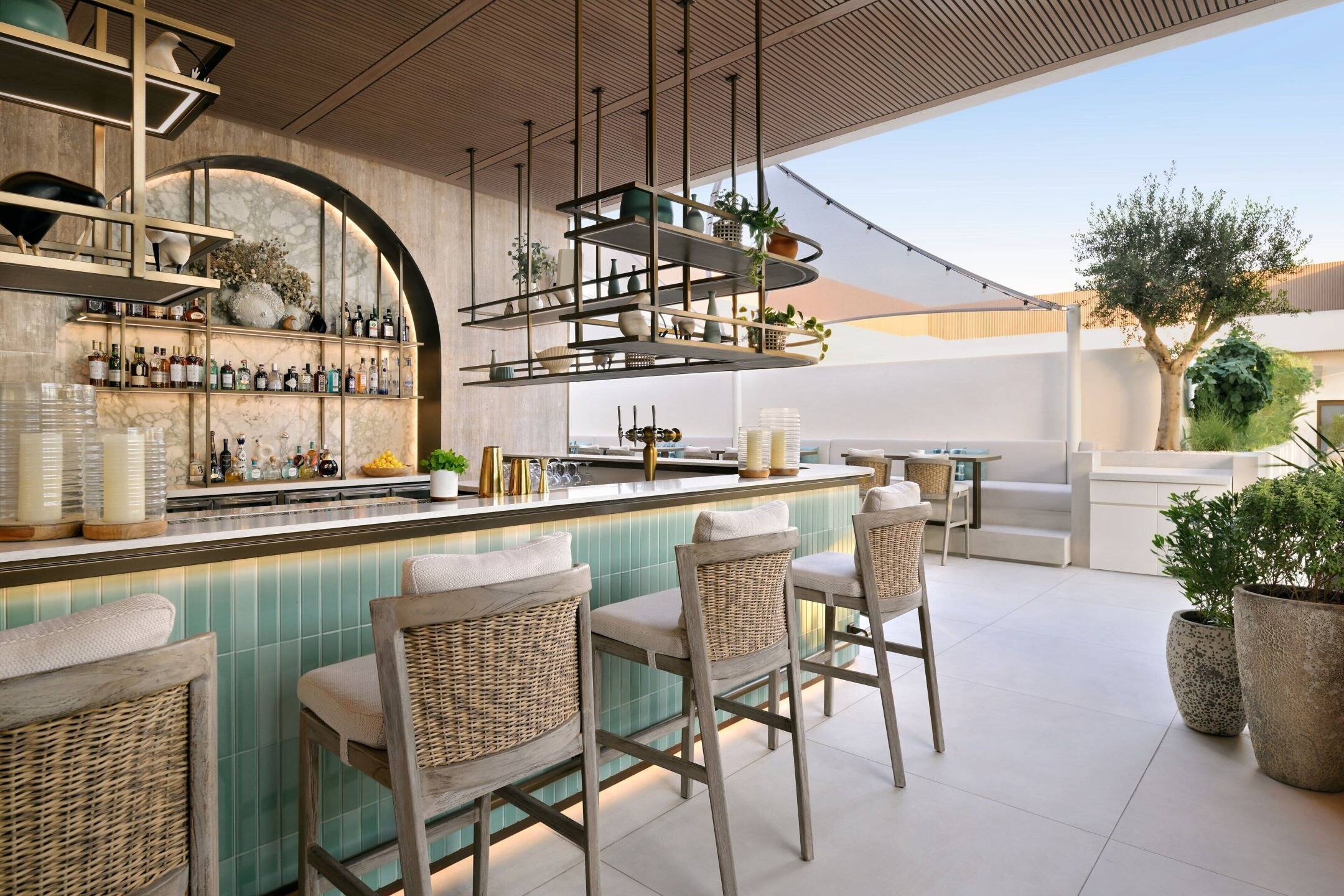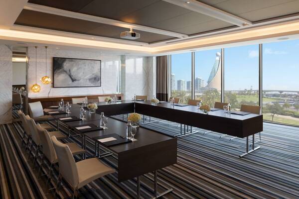 Crisp white linens and floor-to-ceiling windows create a light, airy atmosphere in the spacious guest rooms. Each one features a Sheraton Signature Sleep Experience Bed, a capsule coffee maker and both a rainfall shower and a separate soaking tub. Book a club-level room for access to the Sheraton Club Lounge, where you can enjoy a complimentary breakfast, afternoon tea and premium beverages. If you’ll be in Dubai for a while, consider renting one of the hotel’s furnished apartments, which come with up to three bedrooms, a dining area that can double as a small meeting space and a convenient sofa bed. Stretching over 200 sqm, the luxe Presidential Suite surrounds you with panoramic views of the city lights and boasts a well-equipped kitchen and a Jacuzzi tub in its marble bathroom.