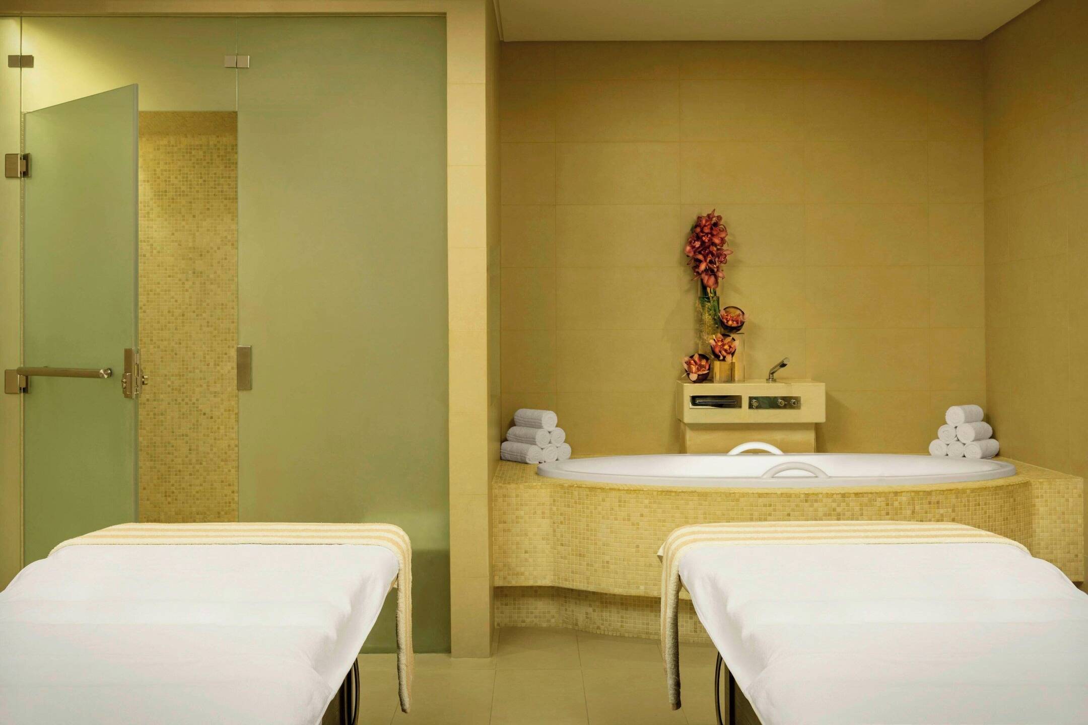 And really, you should plan on at least one trip to the rooftop infinity pool, whether that be to stretch out in the sun with a good book, take a refreshing dip in the sparkling water, or simply admire the panoramic views of the city below. There’s a children’s pool nearby and a lifeguard on duty, and the water is always kept at a comfortable temperature. There’s a 24-hour gym with a sauna and steam room, as well as fitness counsellors and classes. The on-site spa is a relaxing retreat with a full menu of treatments, from a classic couple’s massage to Ayurvedic-inspired treatments.