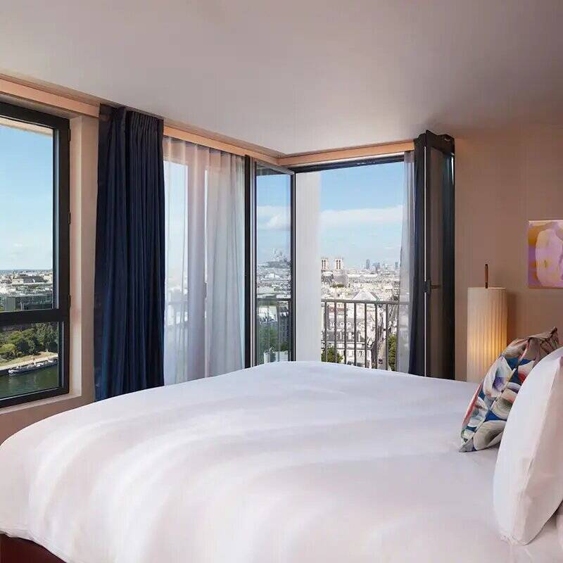 Designed to be warm and welcoming, the 140 guest rooms feature floor-to-ceiling windows to showcase the city views and fill the space with natural light. Each room comes with a complimentary mini-bar of soft drinks, a Nespresso machine, a selection of teas and complimentary bottled water, and some have views of the Seine and the Eiffel Tower. Boasting a prime corner location, the Balcony Studio is perfect for anyone who loves a great view, especially with its two spacious balconies that offer 180-degree views of the... Show more