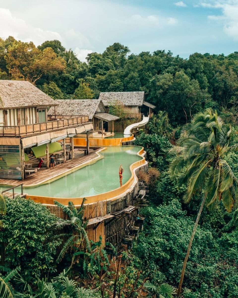 "A paradisiacal getaway with some of the most beautiful villas in Thailand, Soneva Kiri boasts rustic-chic accommodations, adventurous tree-pod dining and classic films screened over the water."