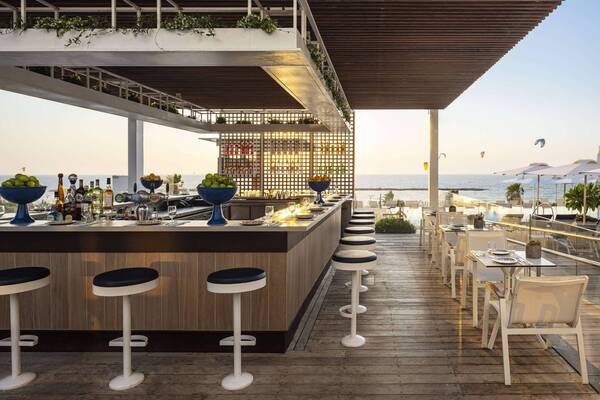 Sereia Restaurant offers all-day dining with contemporary Mediterranean cuisine prepared in an open kitchen, picturesque sea views and a seasonal terrace. Mornings begin with croissants fresh from the oven, while evenings showcase fresh seafood and a traditional Shabbat buffet dinner is offered on Fridays. Order the signature Claypot Negroni or choose from a well-curated menu of wine and champagne. Stop by Sereia Lounge in the lobby to pick up a pastry and a morning cup of coffee or to enjoy a casual, healthy meal. The pool bar makes it easy to cool off with a refreshing drink and a quick snack without venturing far from your lounge chair, while The Common invites you to relax with sophisticated steakhouse fare, top-shelf whiskey and a