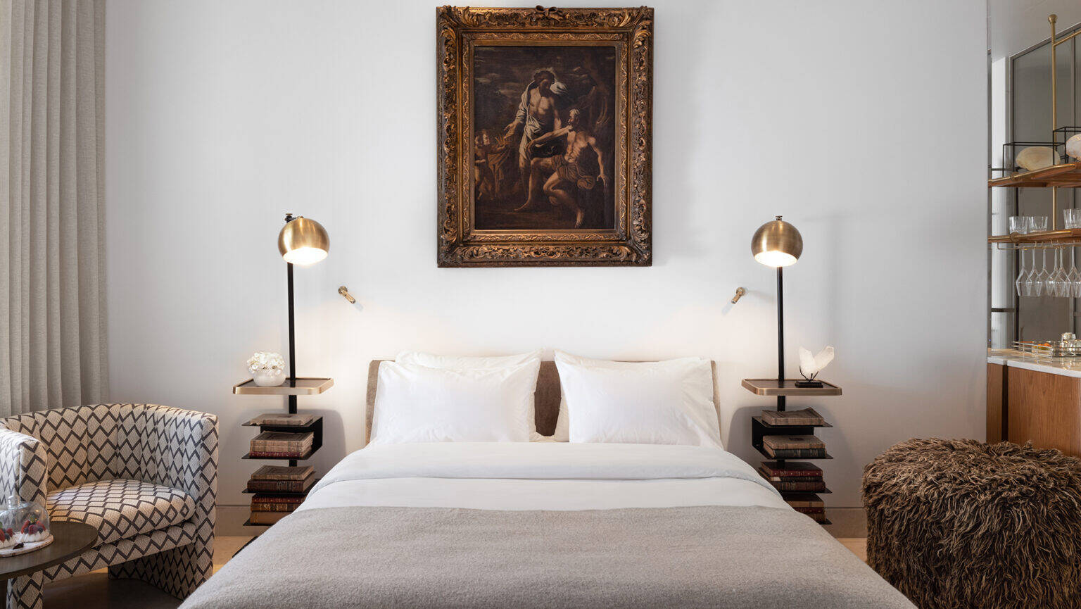An ideal choice for all guests who are not willing to compromise in terms of space and comfort. Showcasing a separate sitting or dining area with a courtyard view, you will love the efficiency, generosity, and privacy of these beautiful suites, as well as the serenity as they are not directly exposed to street life and vibrancy. Precious artworks, custom-made furnishings, and a priceless sense of privacy characterises the Junior Suites. The imposing 3.5 metre ceilings, the soft natural textiles and the tailor-made personal bar with a coffee and tea station and delicious treats upgrade the whole stay. Stunning marble bathrooms with separate walk-in rain-showers, luxurious bathroom amenities and caring details, offer an invigorating wellness experience. Junior Suites are located on the first and the second floor of the hotel.