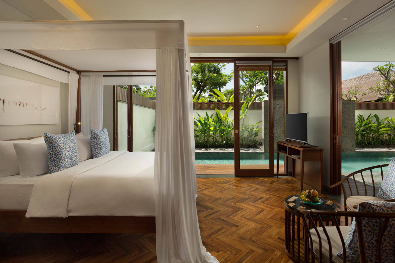 "Nestled alongside one of Bali’s prettiest stretches of golden sand, the all-suite Legian Seminyak, Bali boasts delightful Indonesian cuisine, a beatific spa and a gorgeous three-tiered infinity pool."