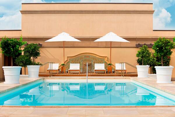 Stay here if you’re looking to embrace all that Beverly Hills has to offer in terms of sophistication and glam, and don’t be surprised if you run into a few A-listers or pro athletes while you’re in residence. Located in the city’s famed Golden Triangle on Canon Drive and Wilshire Boulevard, the hotel is within walking distance to many upscale restaurants and is a block away from Rodeo Drive. It’s under an hour from LAX (pending traffic, of course) and half an hour’s drive to the beaches and Hollywood.