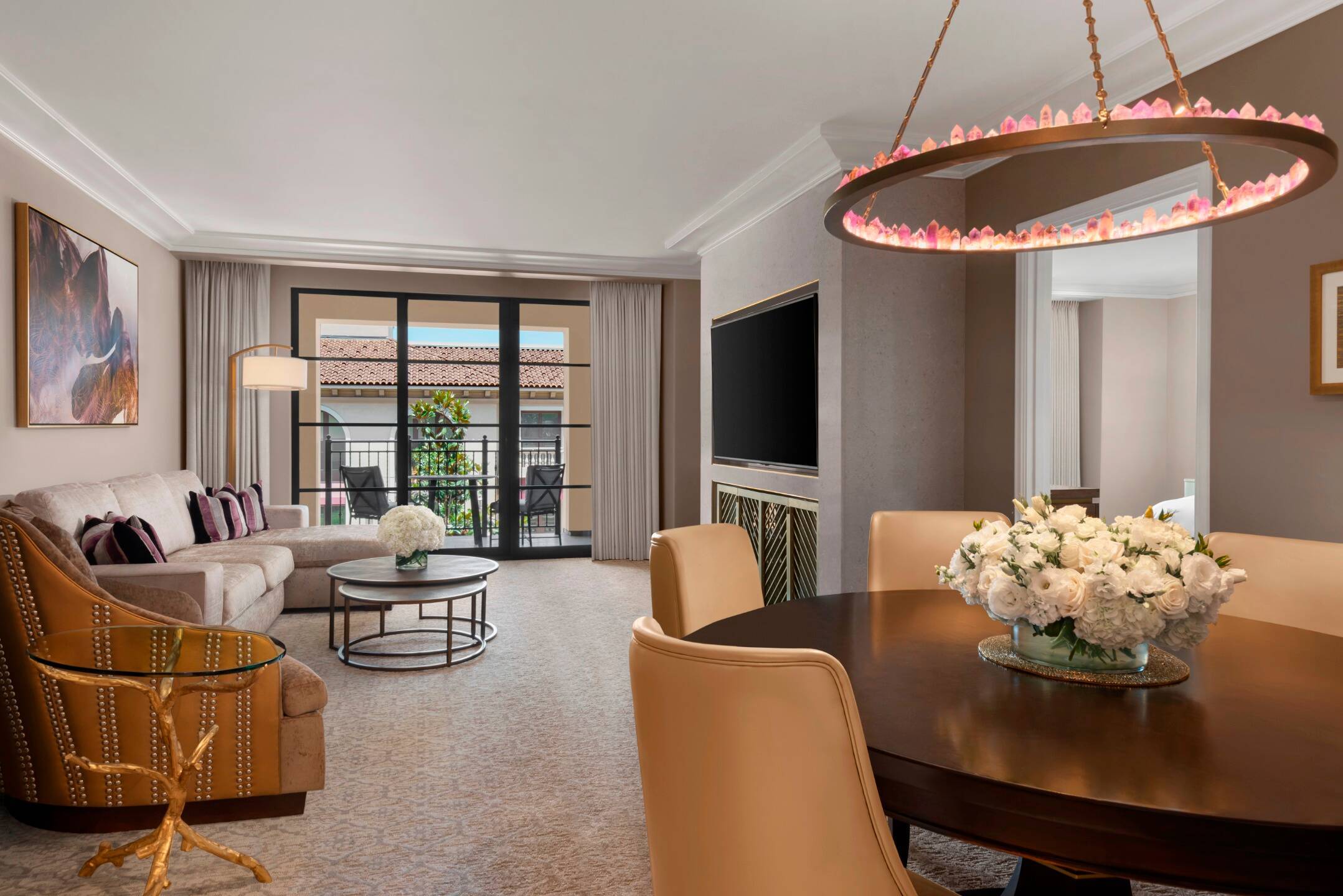 Watch Beverly Hills wake up from the sanctuary of this calming Terrace Junior Suite. Within the sleek 670 sq ft suite, comfort and convenience combine as French, folding doors divide the spacious, open-plan space in two, ensuring privacy for early morning calls and late-night movies to fall asleep to.