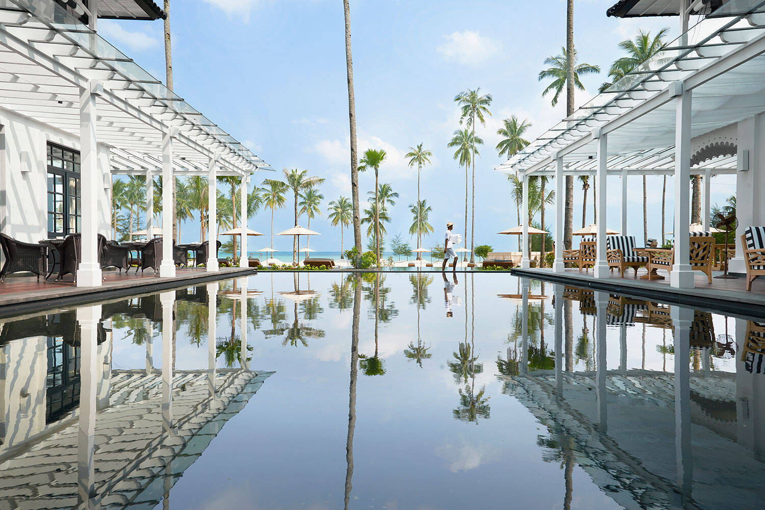 With balcony overlooks the impressive 50-metre infinity pool and the South China Sea beyond