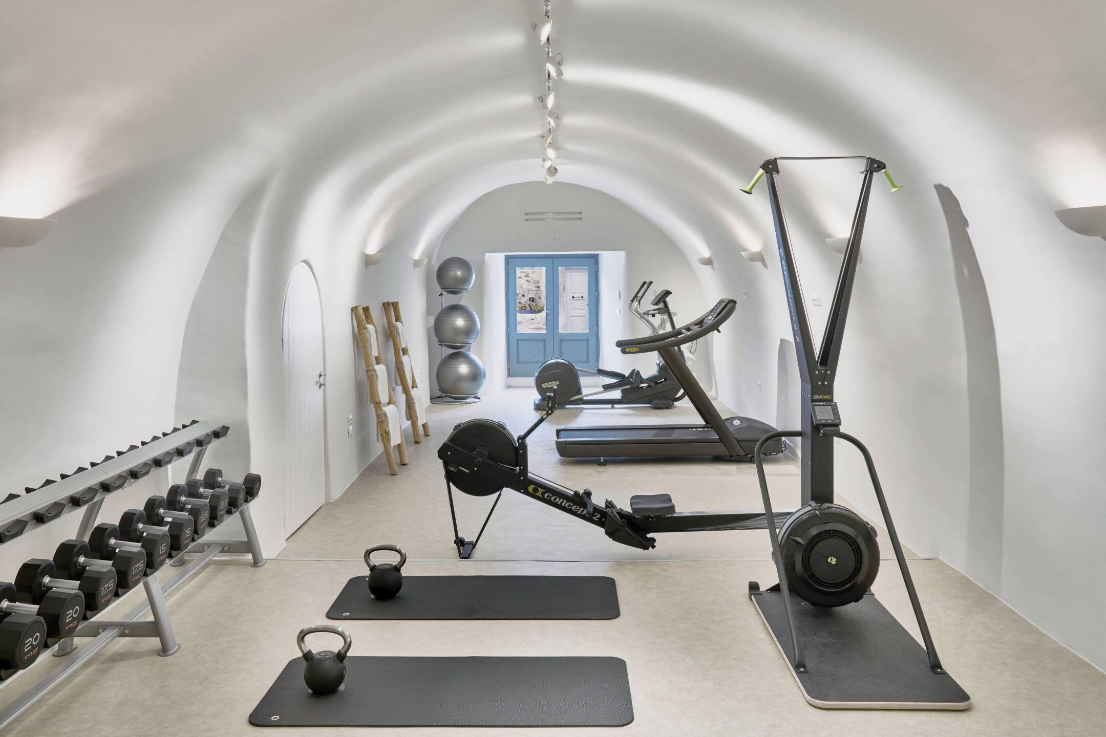 The property’s romantic restaurant, Alati, specialises in fresh fish and seafood and is housed within a stone-walled 400-year-old wine cavern. Dining indoors or outside in the courtyard is very special. Most of the vegetables and herbs used are grown at the resort’s organic farm, and the Mediterranean-inspired menu is equally creative and refined. Pergola Pool Restaurant offers traditional Greek cuisine and Mediterranean barbecue in a chic poolside environment, while Privé Dining offers eclectic five- or seven-course degustation menus inspired by Santorini itself – do be sure to book in advance.