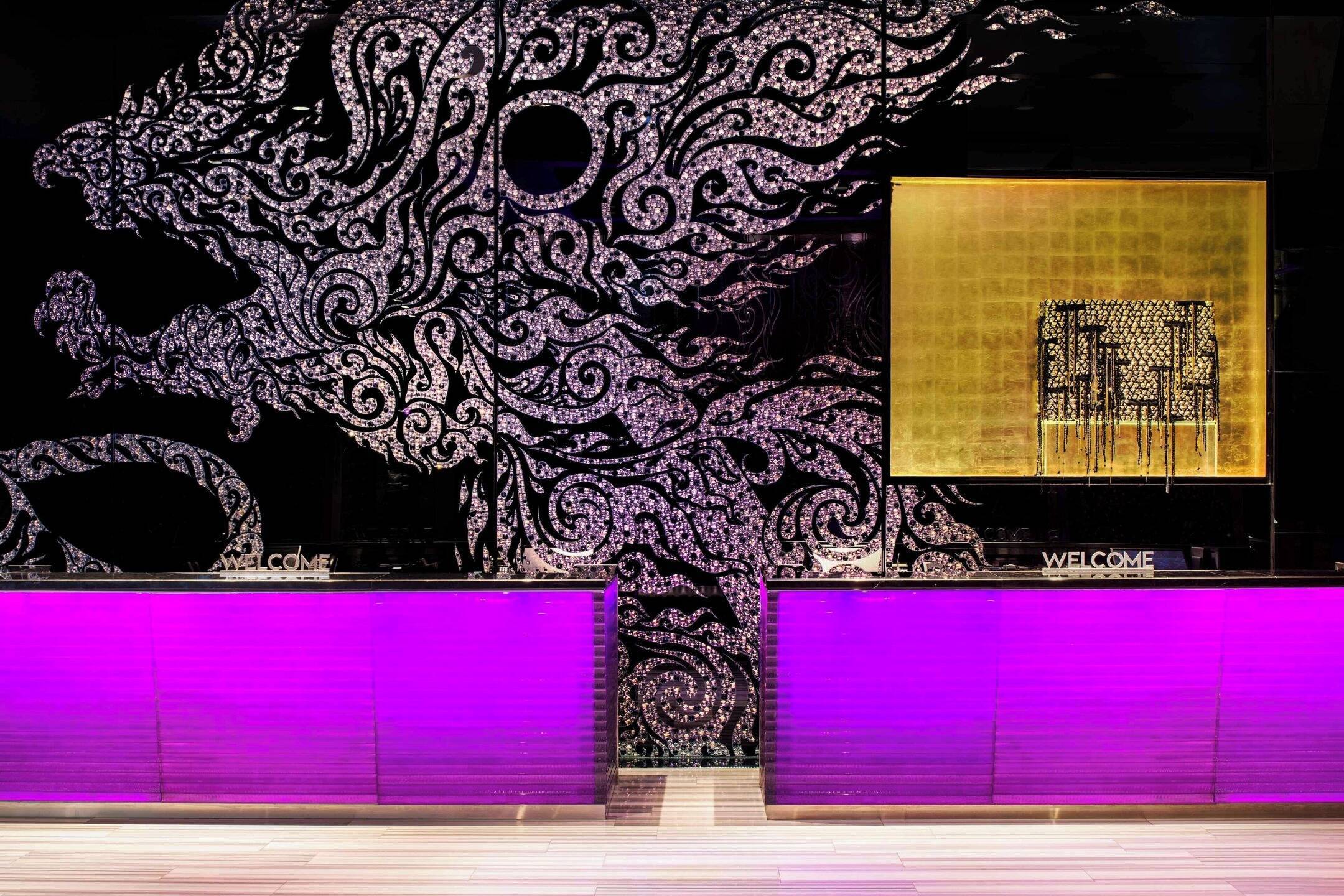 Wake to iconic views through dual walls of windows in Premier Corner Rooms. These colorful vistas get a further boost from the room’s daring décor, which includes a monochrome background, with metallic gold accents. Topped with 350-thread-count sheets, plump pillows from the W pillow menu and sequined Muay Thai gloves, they guarantee an unrivaled night’s sleep.
