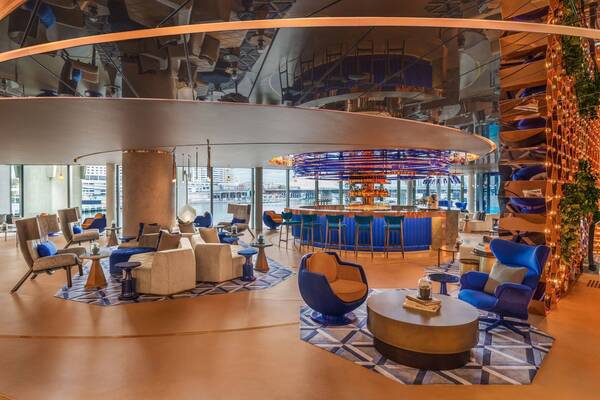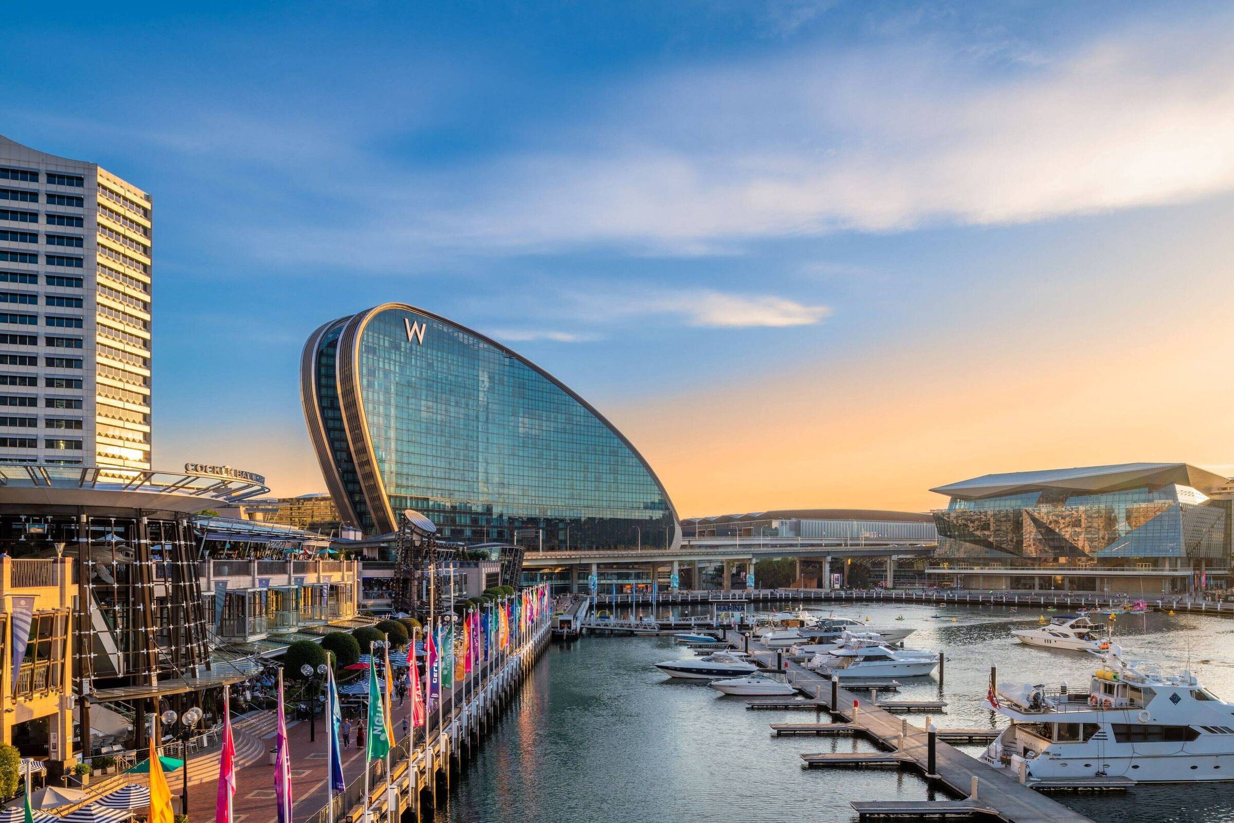 "This five-star hotel’s stylish suites draw design inspiration from the neighbouring Darling Harbour, which is visible from its upscale bar, popular restaurant and rooftop pool."