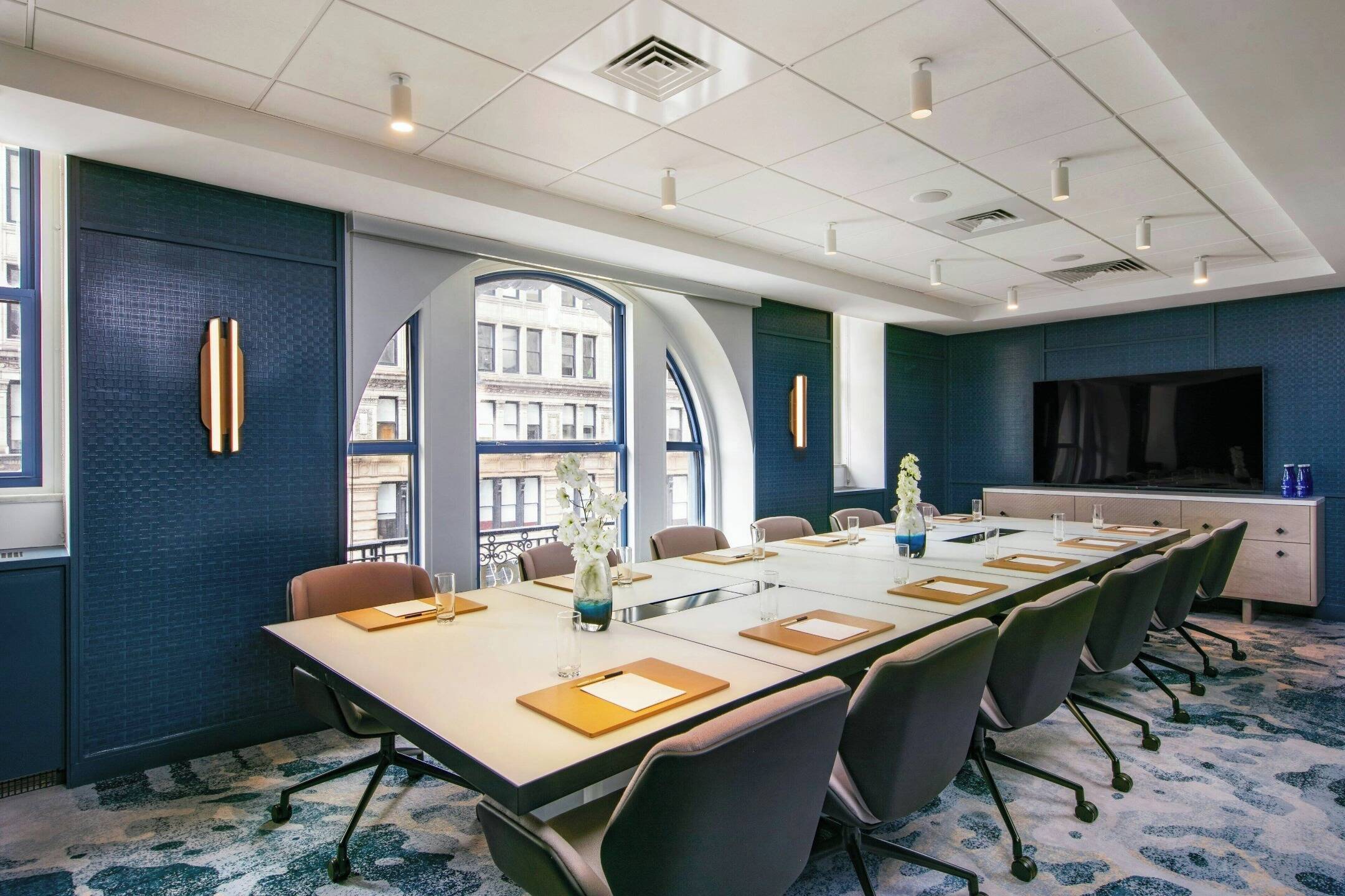 On the basement level, you’ll find W’s signature FIT gym, which is outfitted with everything from a Peloton bike room to the latest Technogym equipment to hydromassage machines for after your workout. The hotel’s Whatever/Whenever service team can set you up with a personal trainer or nearly anything else you can think of throughout your stay. While there’s no on-site spa, this is Manhattan, so you’ll find one within a two-minute walk of the hotel.